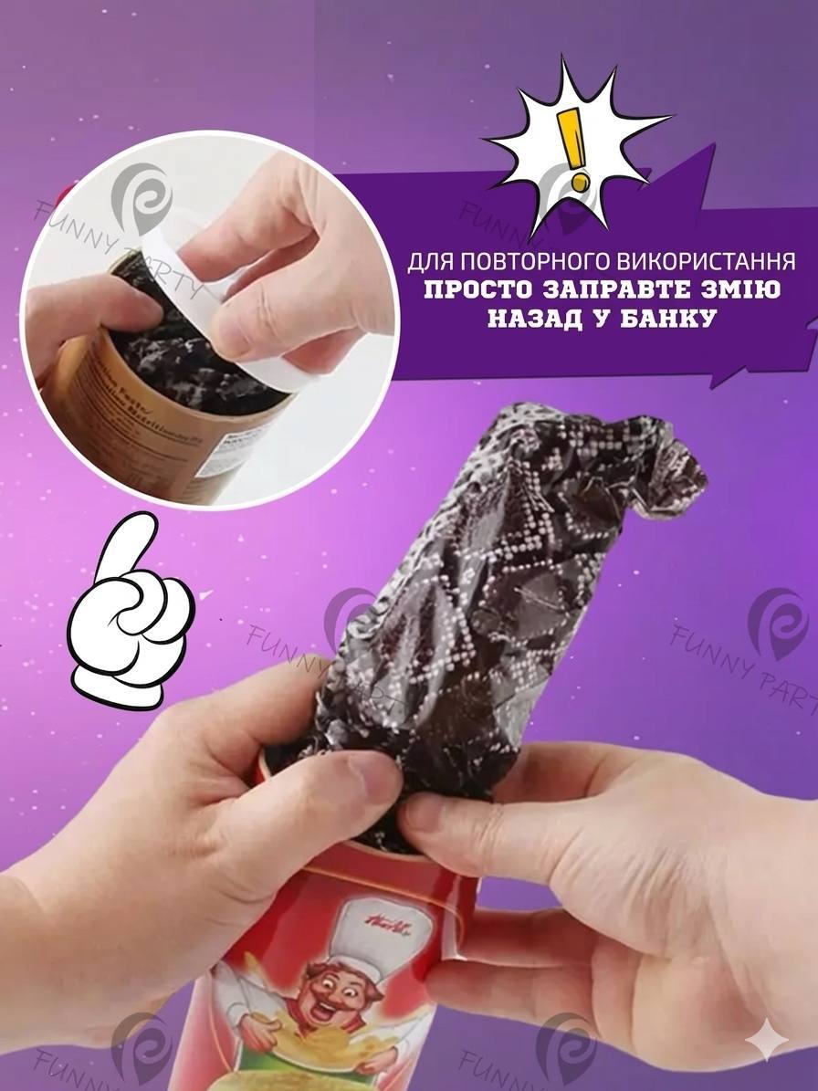 Банка з чіпсами- це весела банка для розіграшів. Натисни на неї і раптово вилетить «змія ». Люди думають, що зараз просто поїдять чіпси…